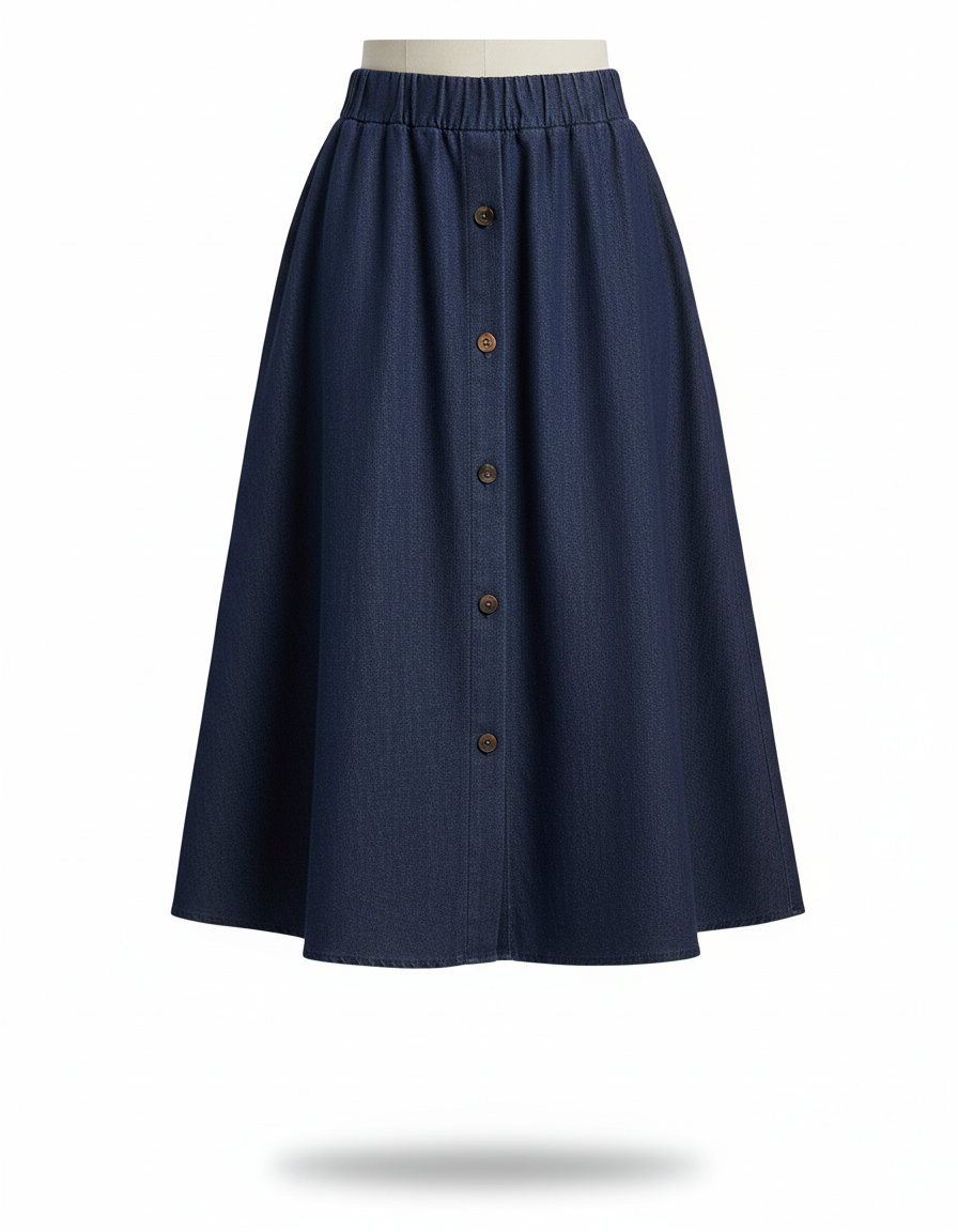 Jupe Boutonnée En JeanJupe En Jean Bleu FoncéJupe En Jean Midi