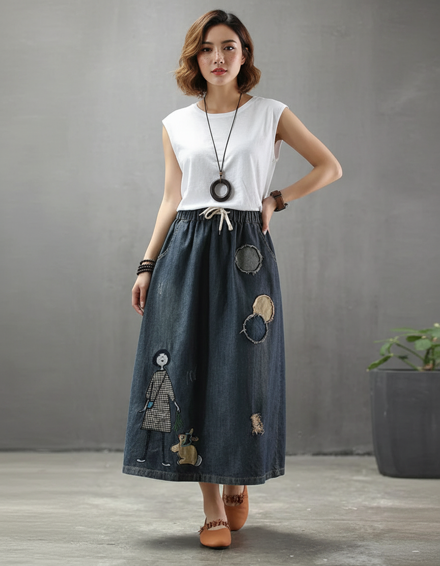 L'Art de Porter la Jupe En Jean Brodée : Style et Aisance au Quotidien