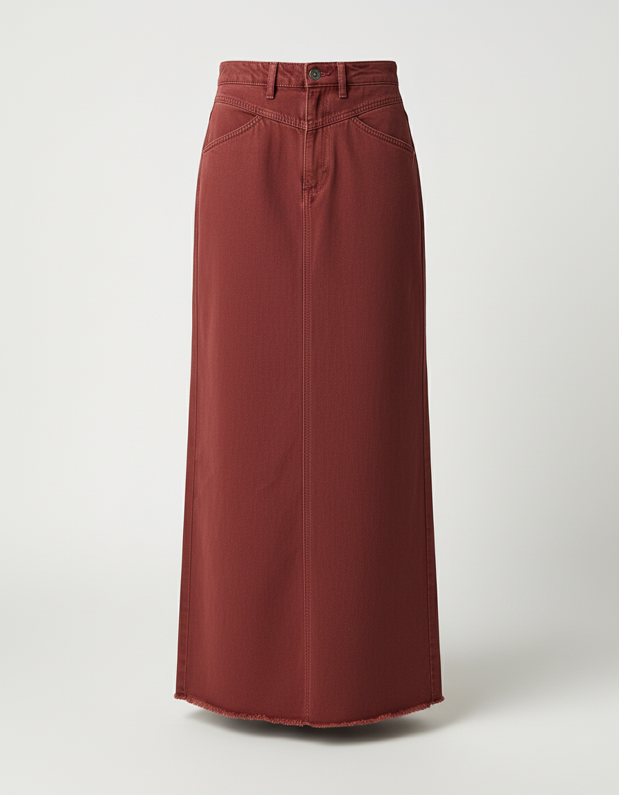 Jupe Longue en Jean Bordeaux : L'Essence du Chic Décontracté