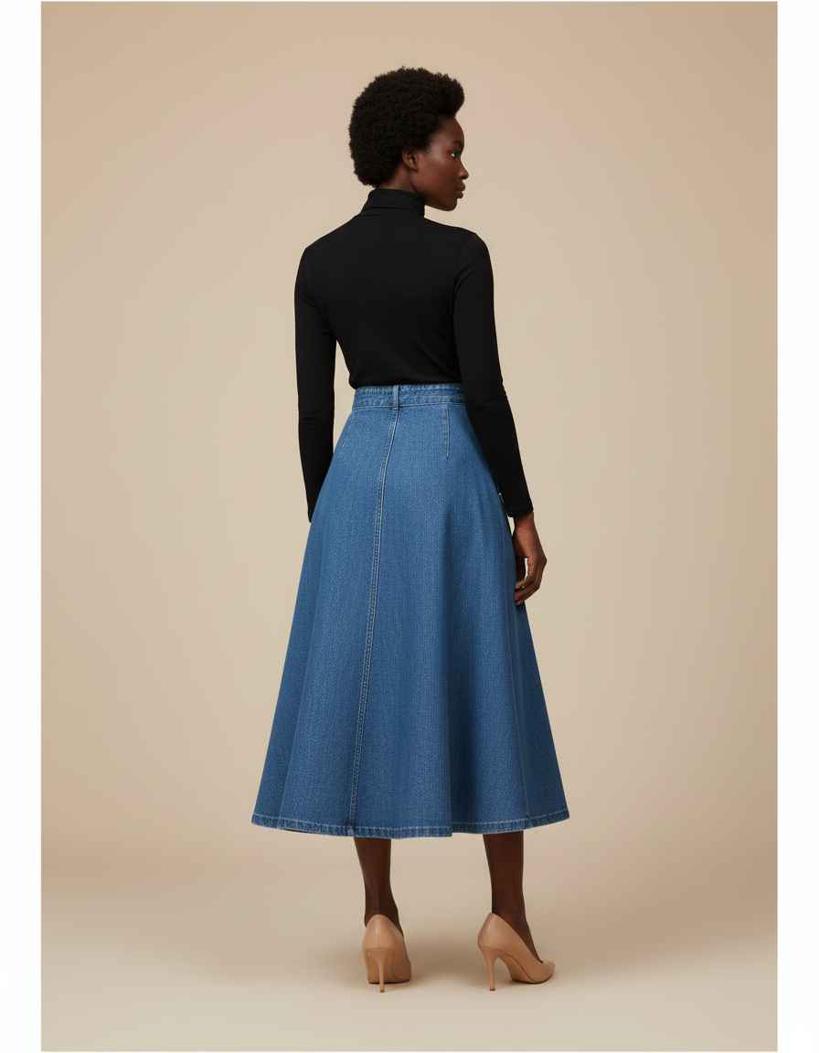 Confectionnée dans un denim premium d'un bleu intemporel, notre Jupe Ceinture réinvente la jupe trapèze avec une élégance décontractée. Sa coupe évasée, pensée pour épouser harmonieusement votre silhouette tout en offrant une liberté de mouvement absolue, garantit un confort inégalé du matin au soir. Vous apprécierez son tombé impeccable qui structure la silhouette sans jamais entraver, faisant de chaque pas une affirmation de style et d'aisance.