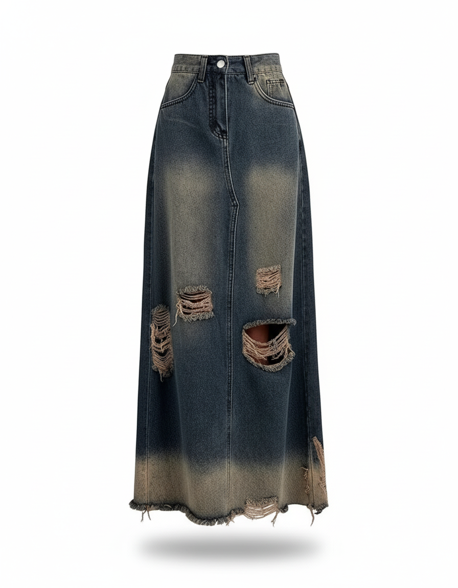 L'Audace Redéfinie : La Jupe Longue en Jean Déchiré