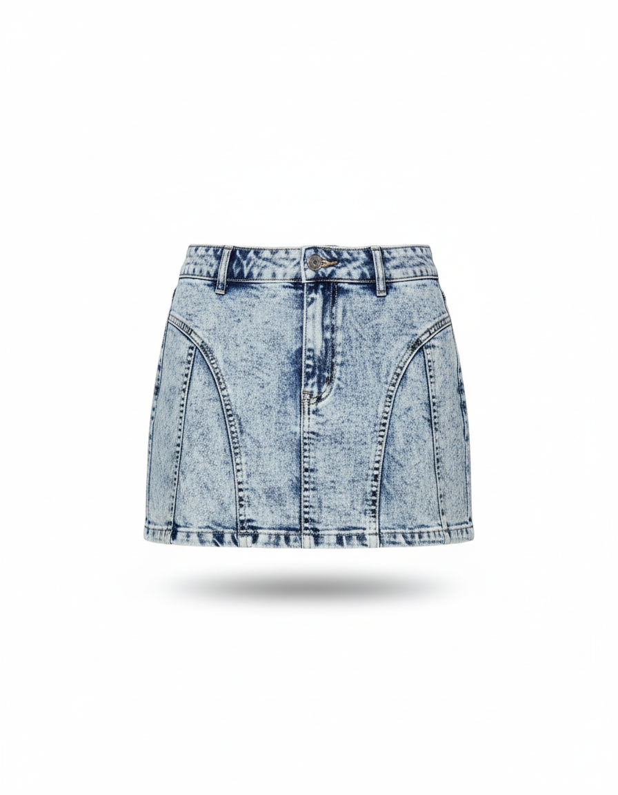 - Mini-jupe en denim à l'effet délavé distinctif.