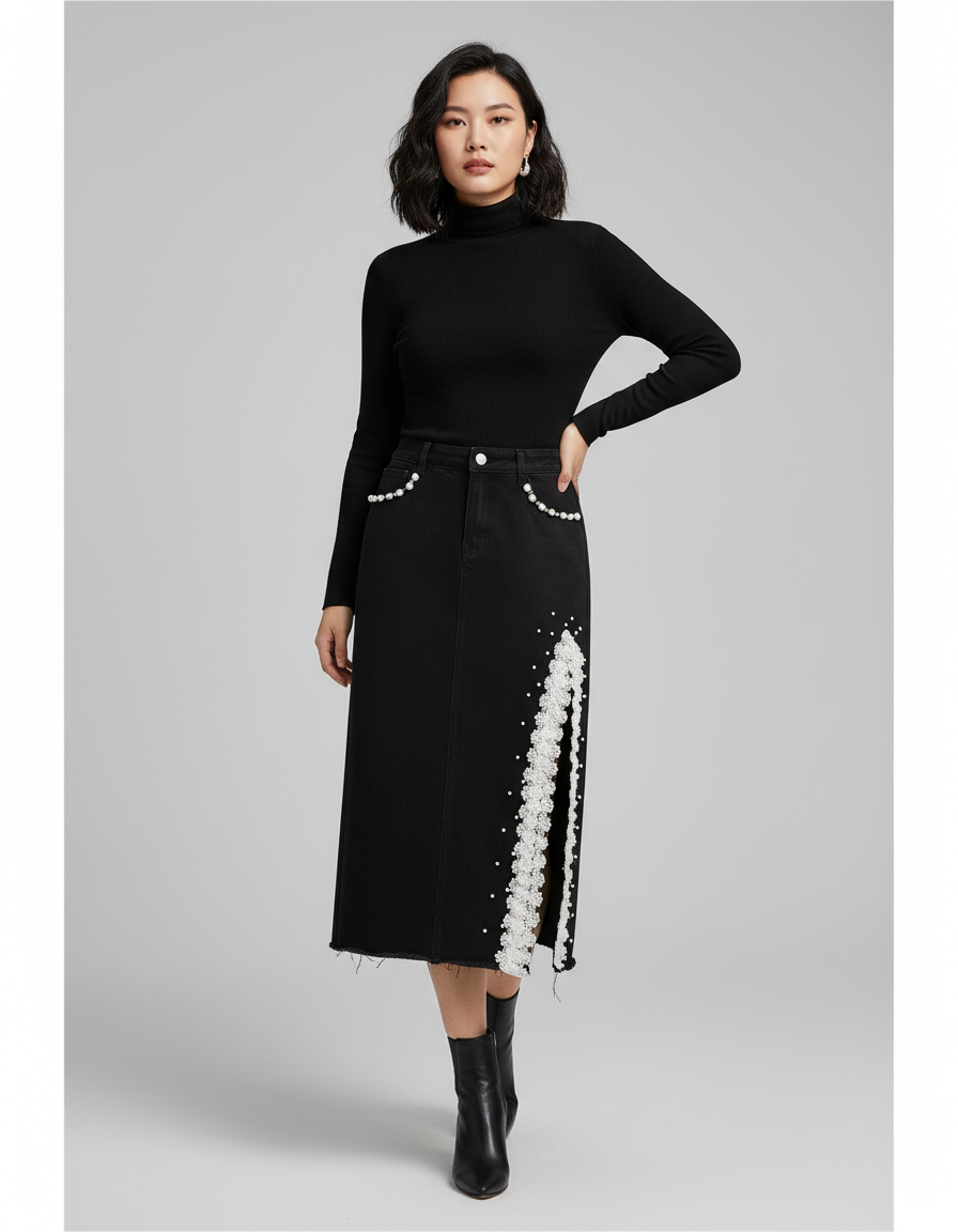 L'Éclat Redéfini : La Jupe En Jean Perle, Votre Signature de Style