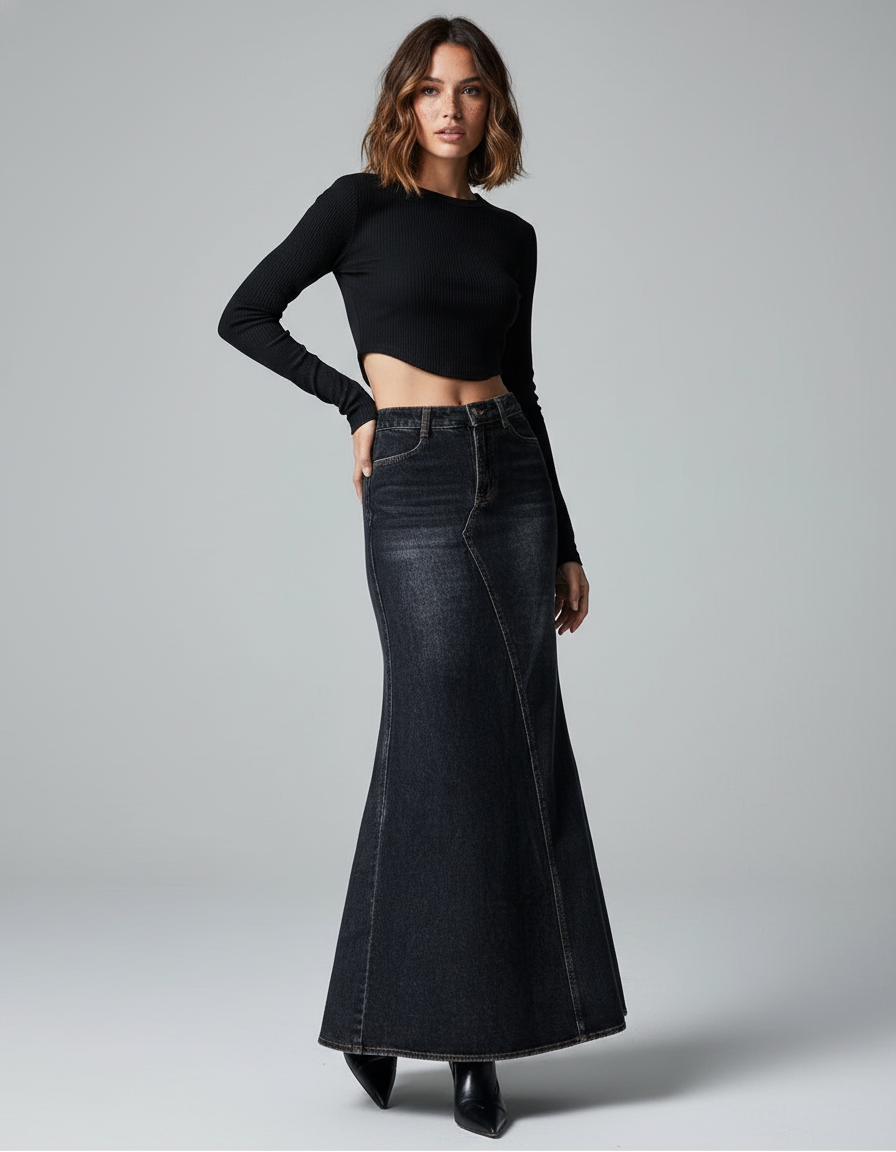 Jupe En Jean Sirene : Coupe Longue en Denim