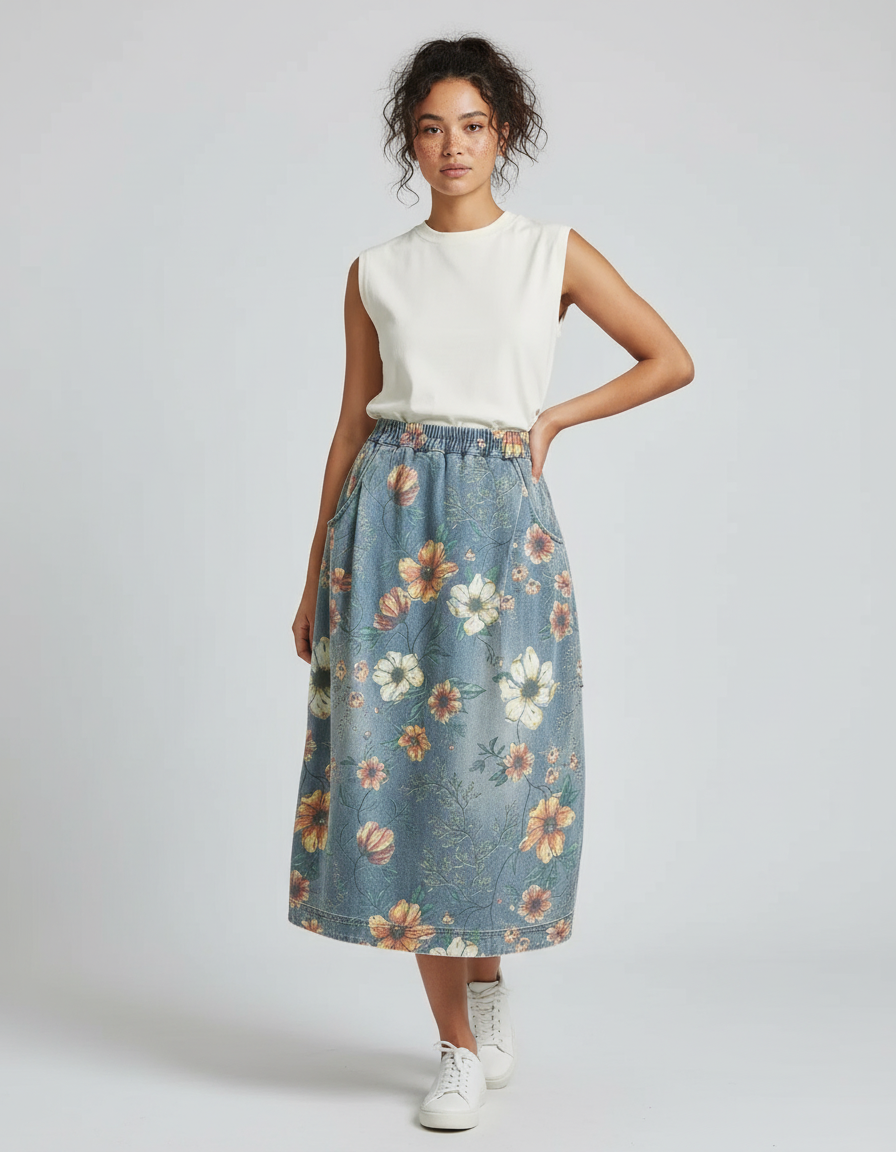 Jupe En Jeans Mi Longue Fleurie : L'Élégance Naturelle