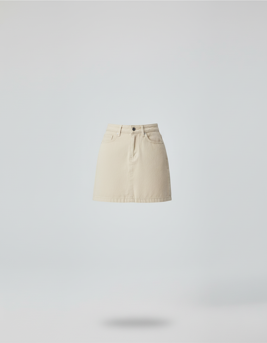 La Mini-Jupe Trapèze en Jean Beige : L'Essentiel Polyvalent