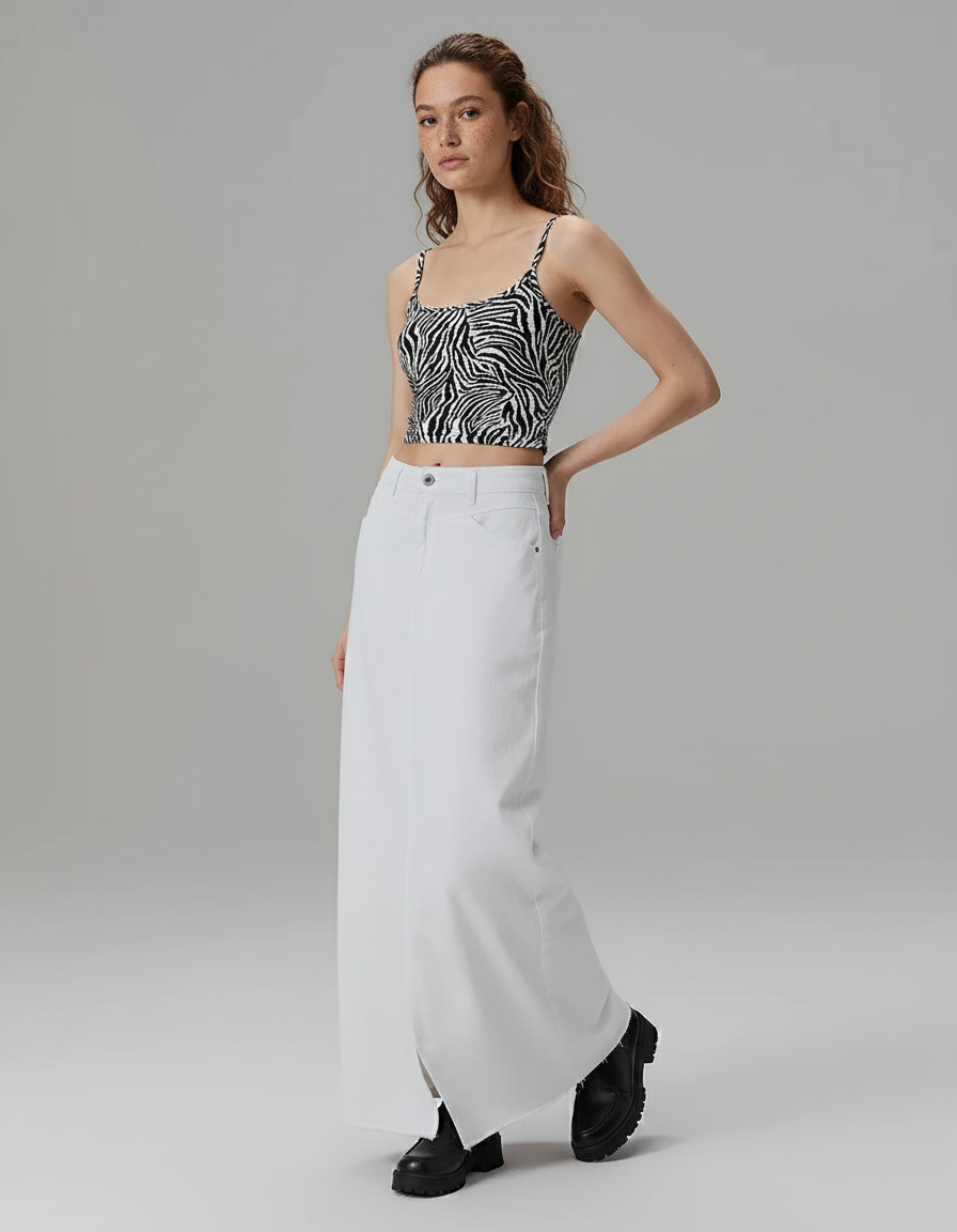 La Jupe Jean Blanc Fendue : L'Élégance Fluide pour Chaque Instant