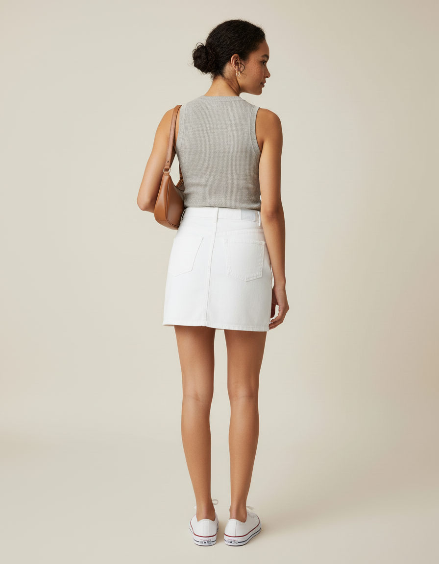 Polyvalente par excellence, la Jupe Jean Blanche Mini se prête à une multitude de looks. Pour une allure décontractée chic, associez-la à un débardeur côtelé et des sneakers épurées, comme sur l'image, pour un ensemble frais et moderne. En soirée ou pour un déjeuner en terrasse, optez pour une blouse fluide et des sandales plates pour une touche plus raffinée. Investissez dans cette pièce intemporelle qui transcende les saisons et les tendances, et transformez chaque occasion en une opportunité d'exprimer votre style avec assurance et simplicité.