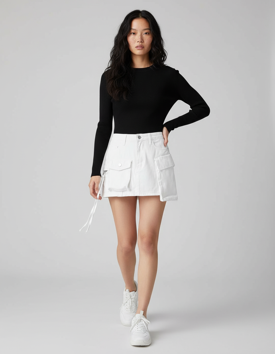 Jupe Jean Blanche Poches Cargo : L'Essence du Style Urbain Chic