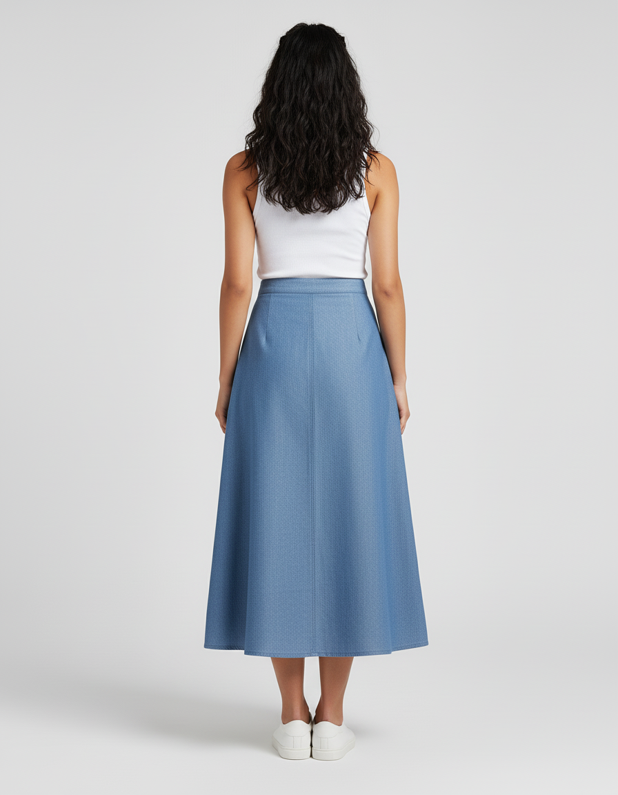 Jupe Jean Bleu Clair Boutonnée Décontractée – Longueur au Sol