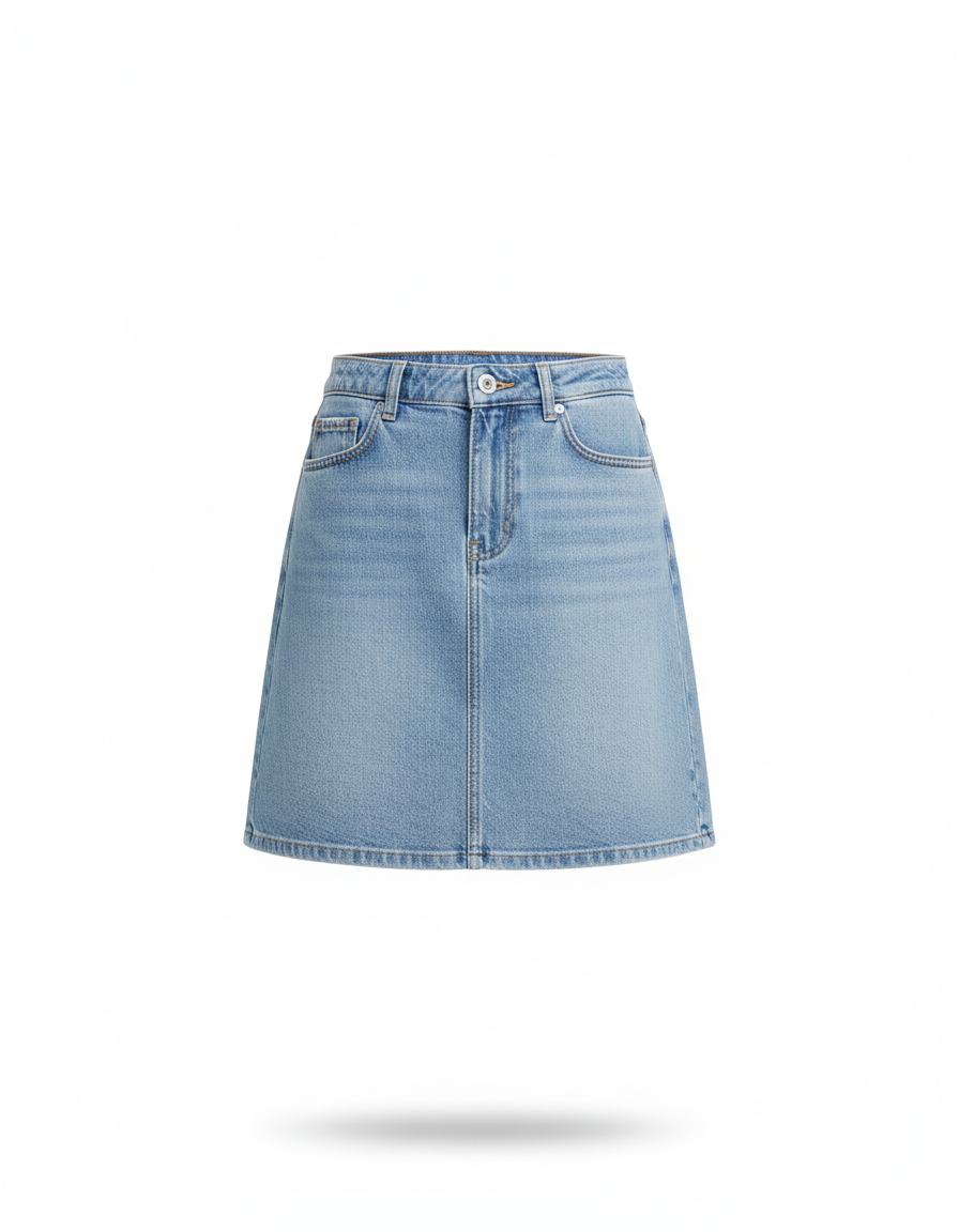 Découvrez notre jupe en jean bleu clair, parfaite pour un look décontracté et stylé en toute saison.