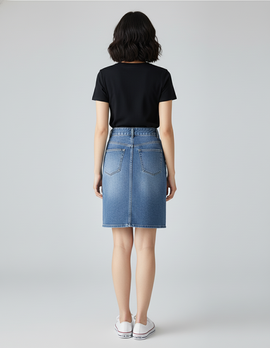 Notre Jupe Jean Bleu Clair Taille Haute Décontractée incarne l'élégance sans effort pour chaque moment de votre journée. Son denim premium, d'un bleu clair intemporel, offre une toile de fond parfaite pour une multitude de looks. Pour une journée décontractée, associez-la à un t-shirt simple et des baskets blanches, comme dans l'image, pour une allure fraîche et moderne. En soirée ou pour un rendez-vous amical, optez pour une blouse fluide et des sandales compensées, transformant instantanément votre tenue avec une touche de sophistication discrète. Elle est la pièce maîtresse d'une garde-robe pensée pour la femme dynamique.