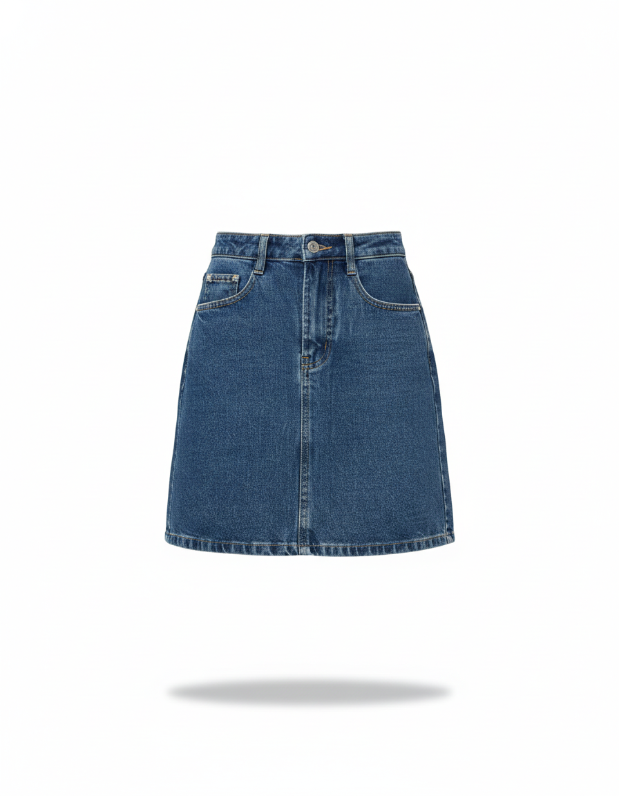 Cette jupe en jean bleue polyvalente offre une coupe décontractée pour un style quotidien.