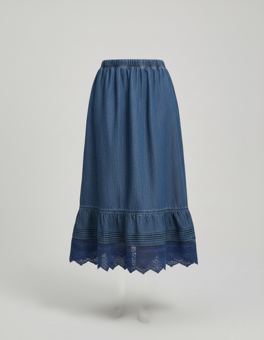 Jupe Jean Bleue Dentelle Élégante Longue