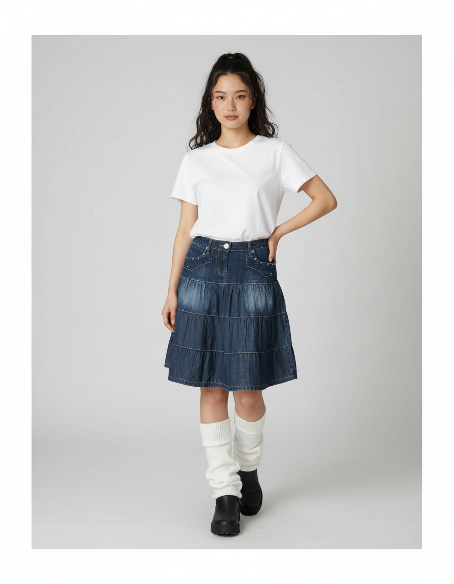 Jupe Jean Bleue Étagée Fluide : L'Élégance Décontractée Réinventée