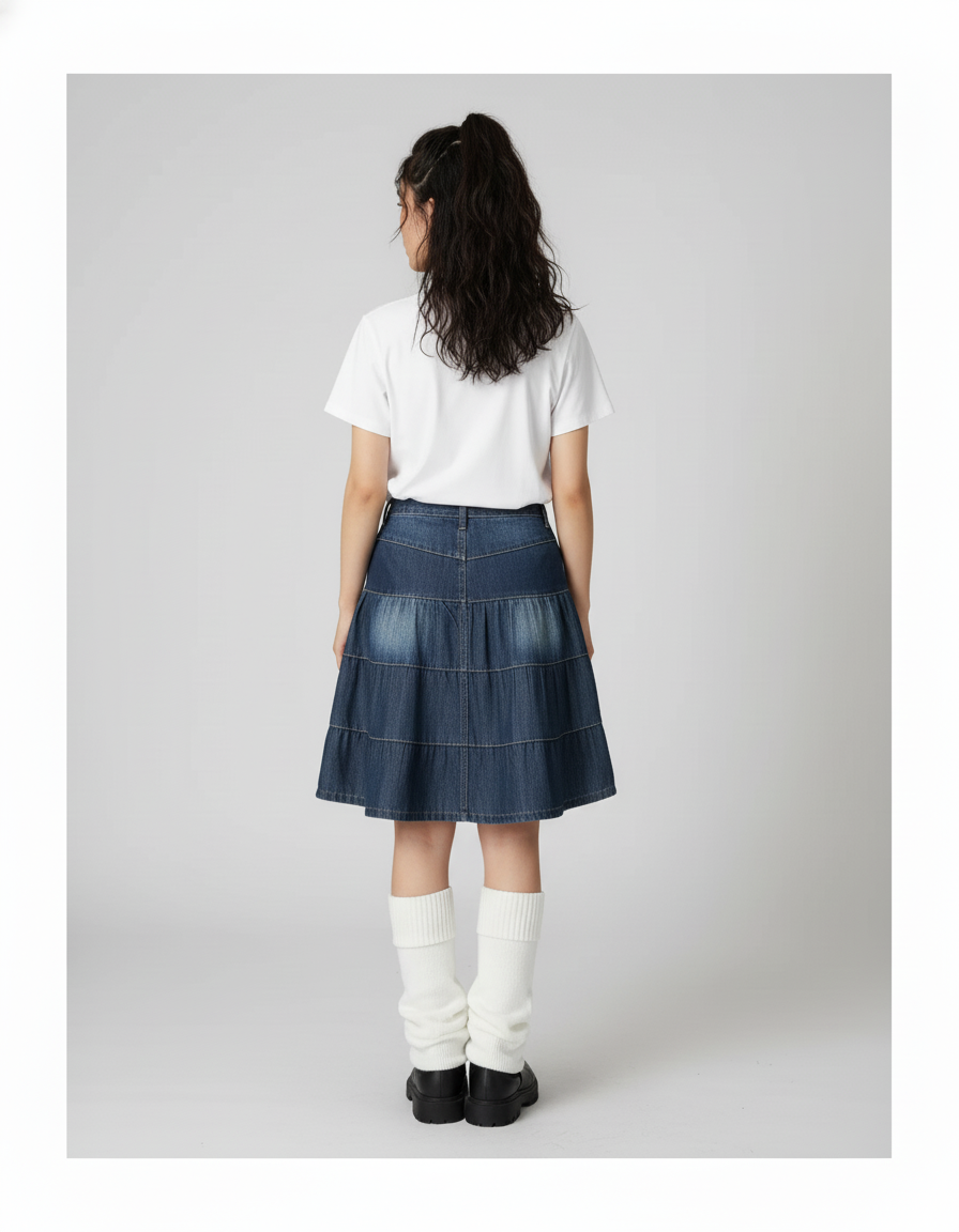 La Jupe Jean Bleue Étagée Fluide : L'Élégance Sans Compromis