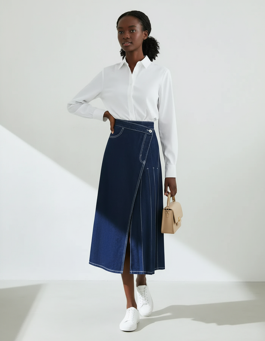 La Jupe Portefeuille Denim : L'Élégance Redéfinie au Quotidien