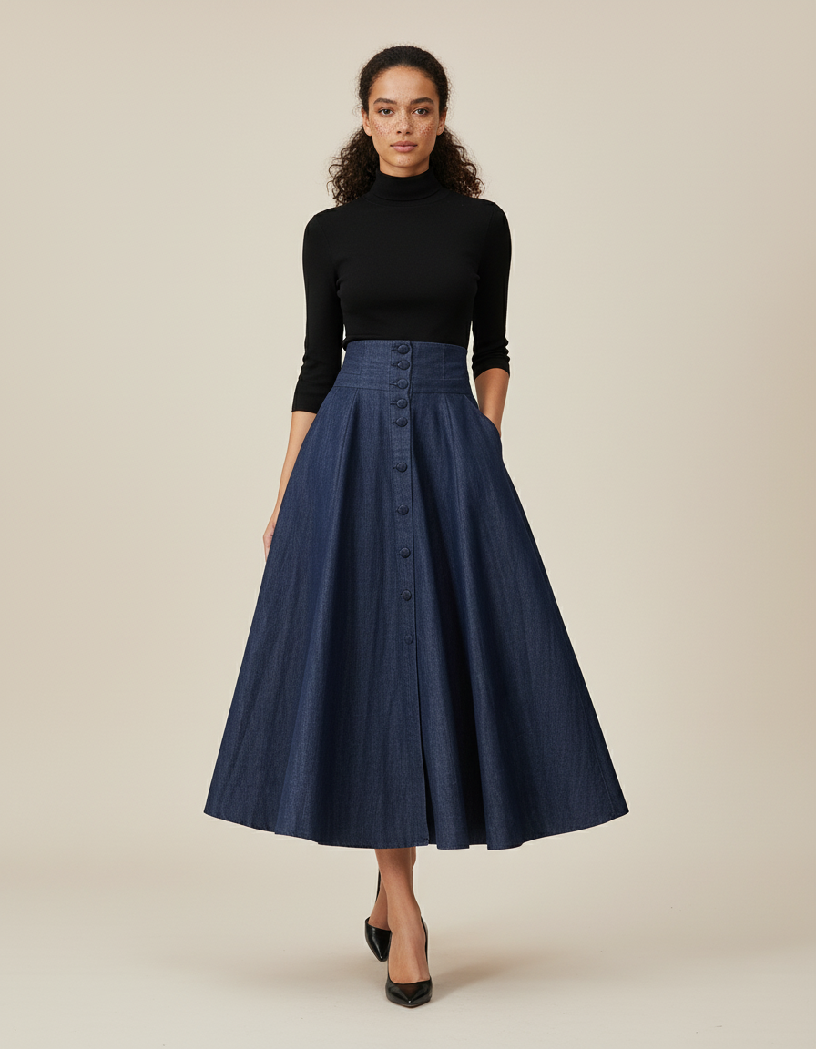 Jupe Jean Boutonnée Évasée Élégante : L'Alliance du Style et du Confort