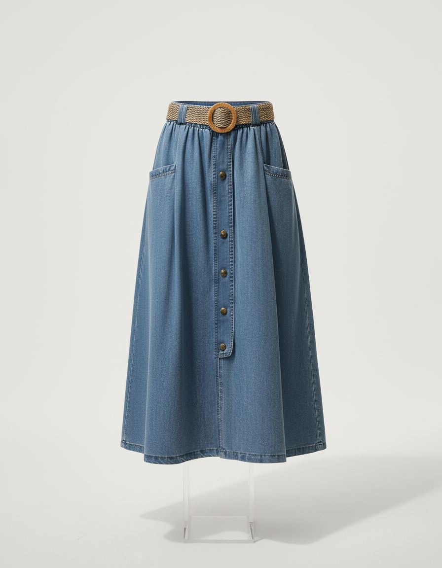 Jupe Jean Boutonnée Évasée Fluide – Caractéristiques
