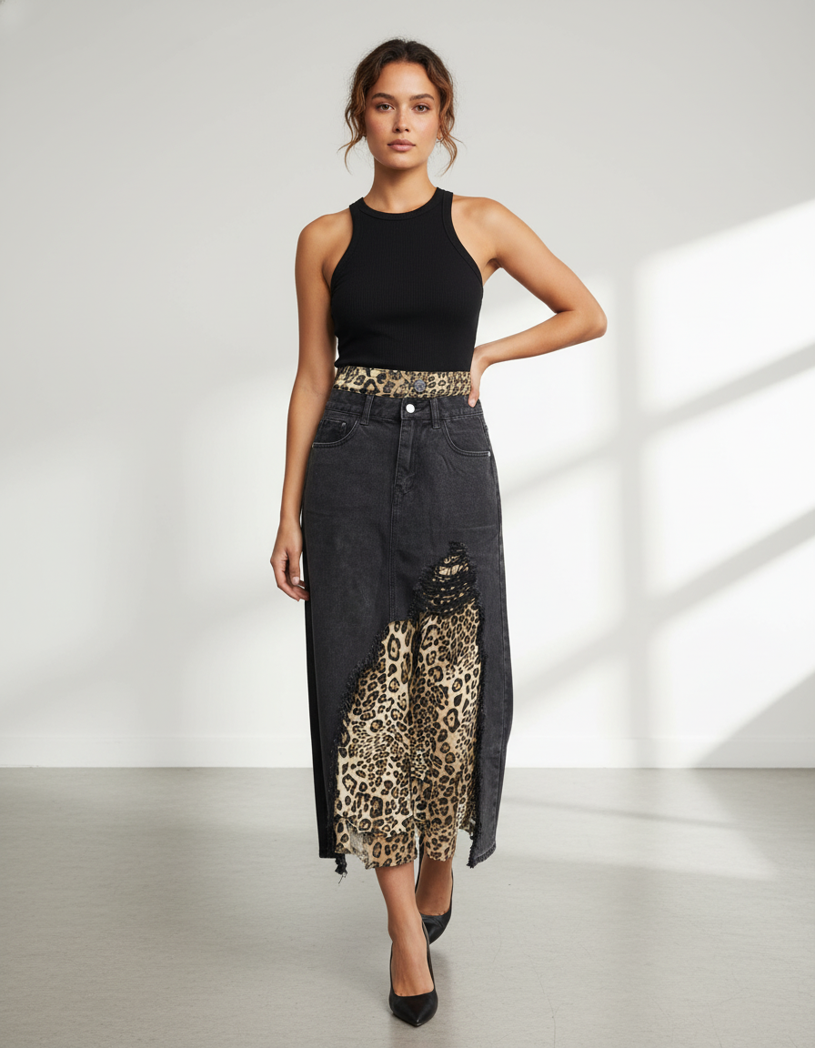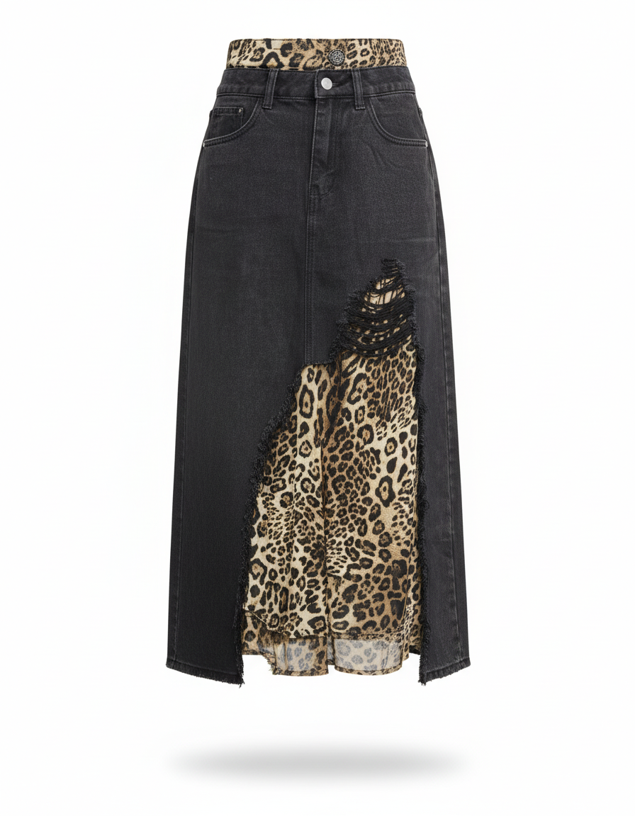 La Jupe Jean Déchirée Léopard Chic : L'Audace Redéfinie