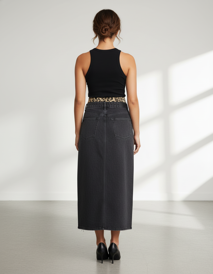 Ce qui la distingue ? Son design asymétrique innovant, où le denim brut et déchiré s'ouvre sur un imprimé léopard vibrant et soyeux. Chaque détail, des déchirures stratégiques à la qualité du denim premium, est pensé pour créer un contraste saisissant et une profondeur visuelle unique. Loin des conventions, cette jupe haut de gamme est une œuvre d'art portable, façonnée pour une tenue impeccable et un confort durable, symbolisant un luxe moderne qui célèbre la force et la féminité avec une touche de rébellion maîtrisée.