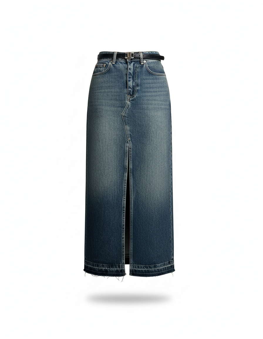 Jupe Jean Dégradée Fendue Chic : L'Élégance Bohème-Chic Réinventée