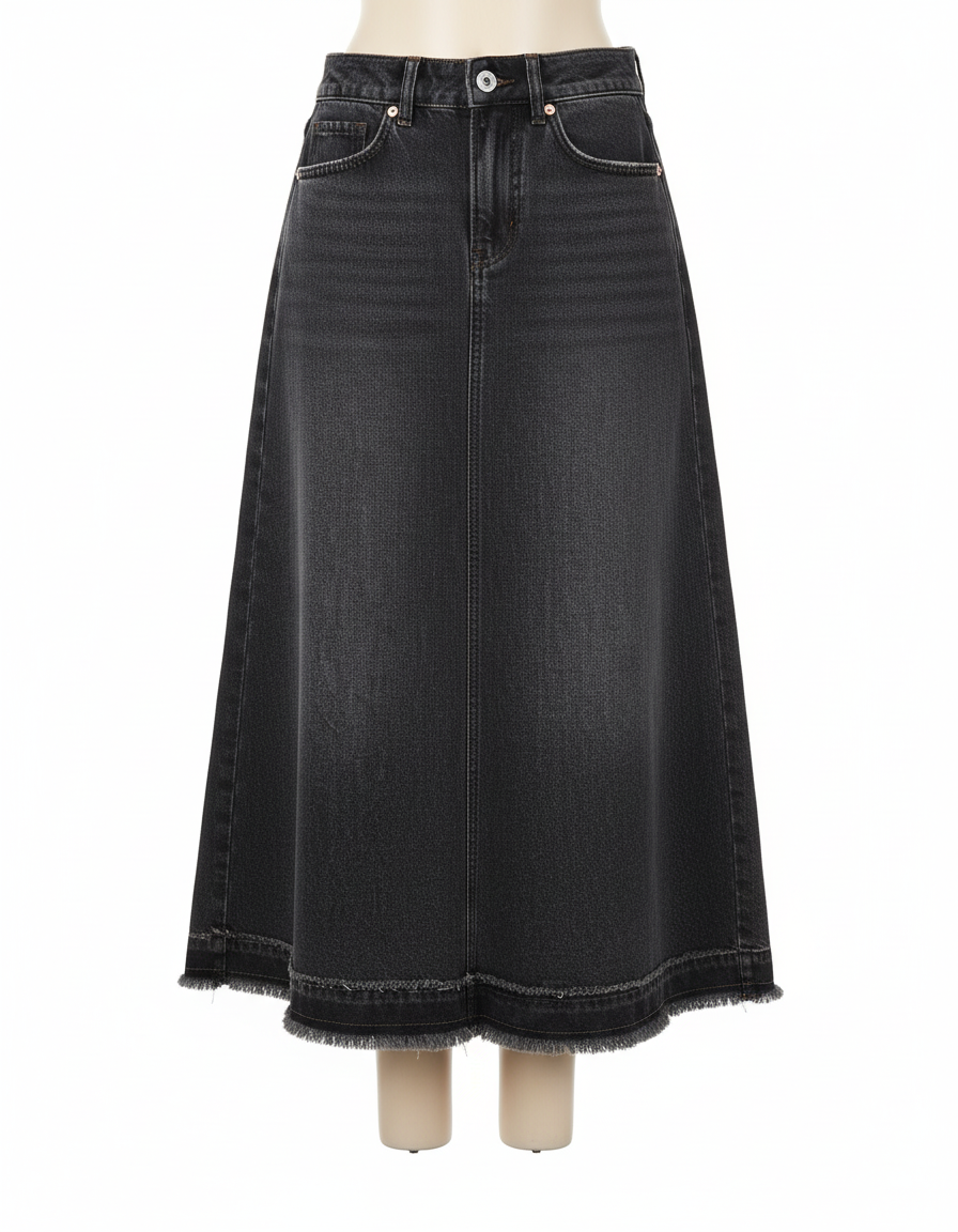 Jupe Jean Gris Anthracite Frangée Chic : Coupe Midi