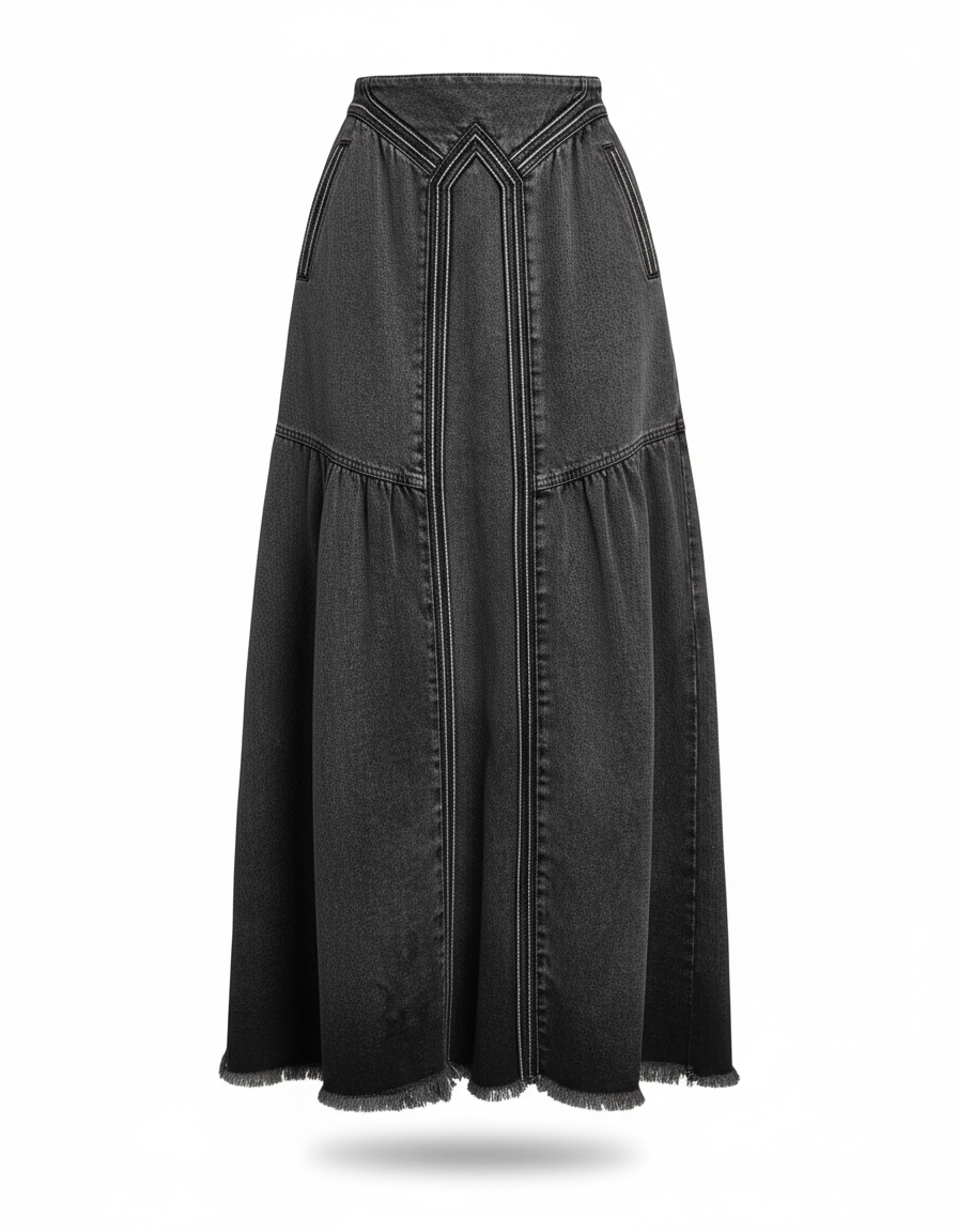 L'Élégance Décontractée Redéfinie : La Jupe Jean Gris Délavé Évasée Chic