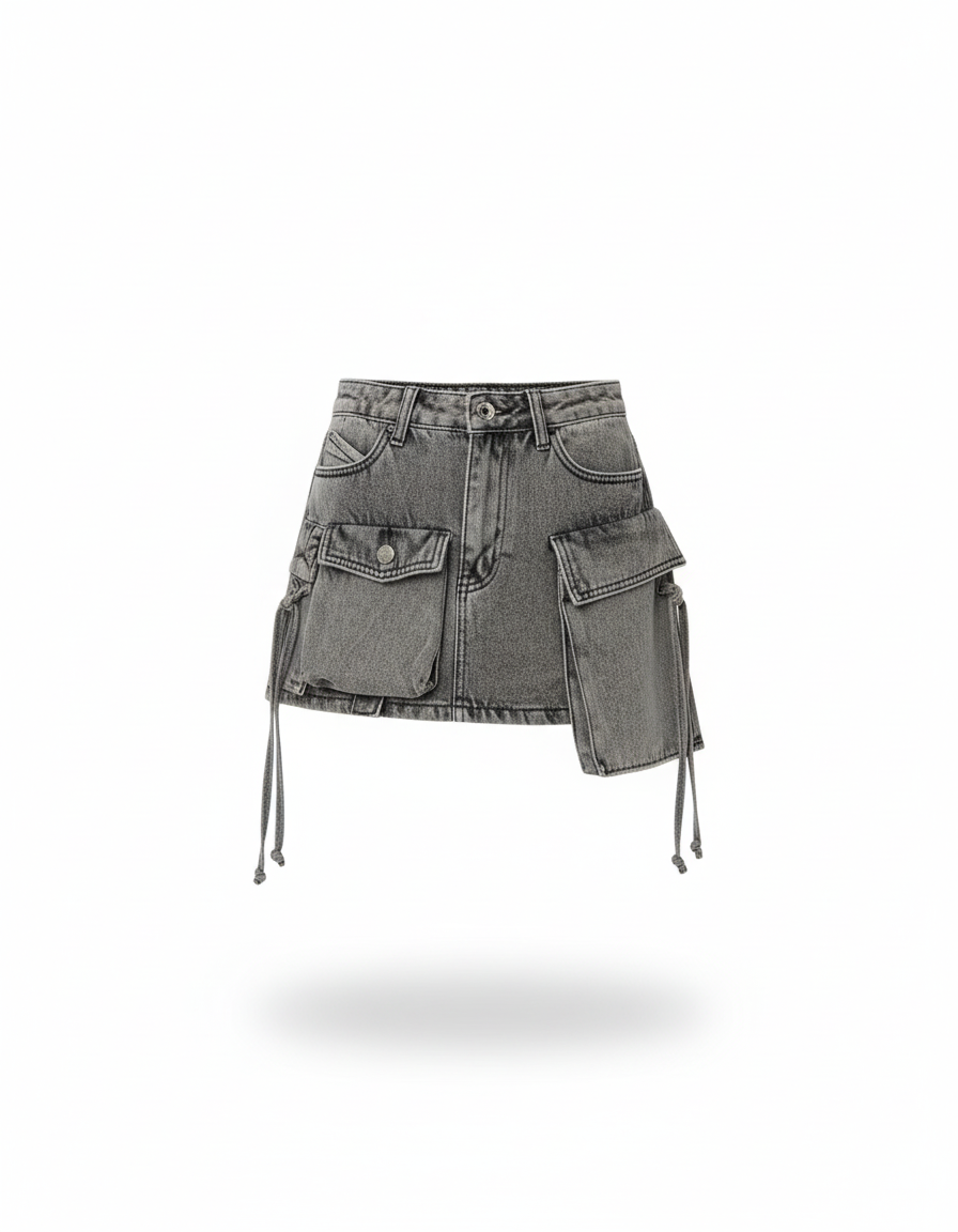 Jupe Jean Gris Délavé Poches Cargo Décontractée
