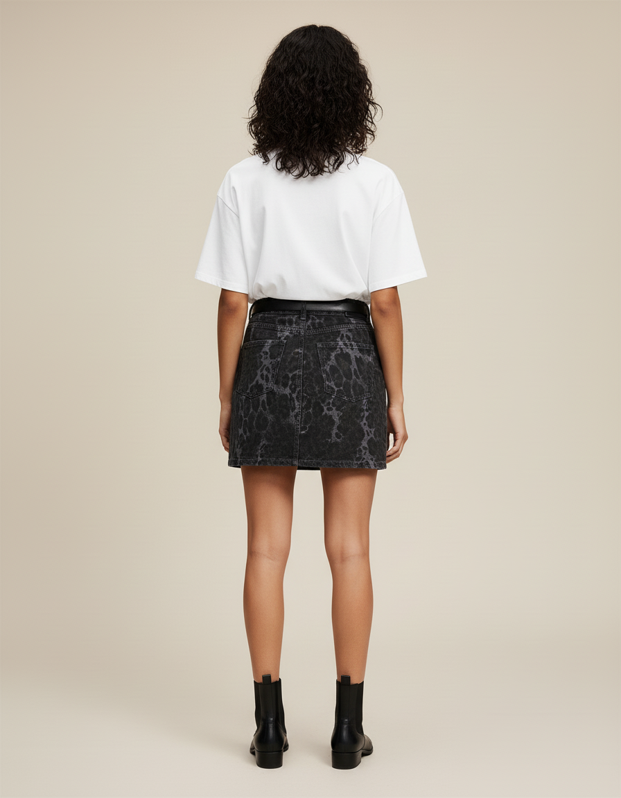 Jupe Courte Léopard en Jean : L'Élégance Sauvage Redéfinie