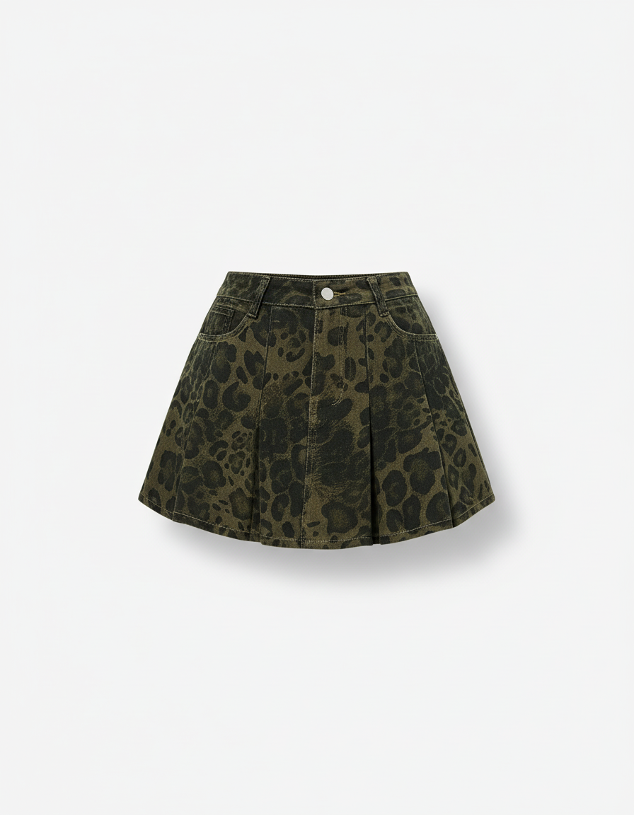 Jupe Jean Imprimé Léopard Plissée Décontractée – Usage