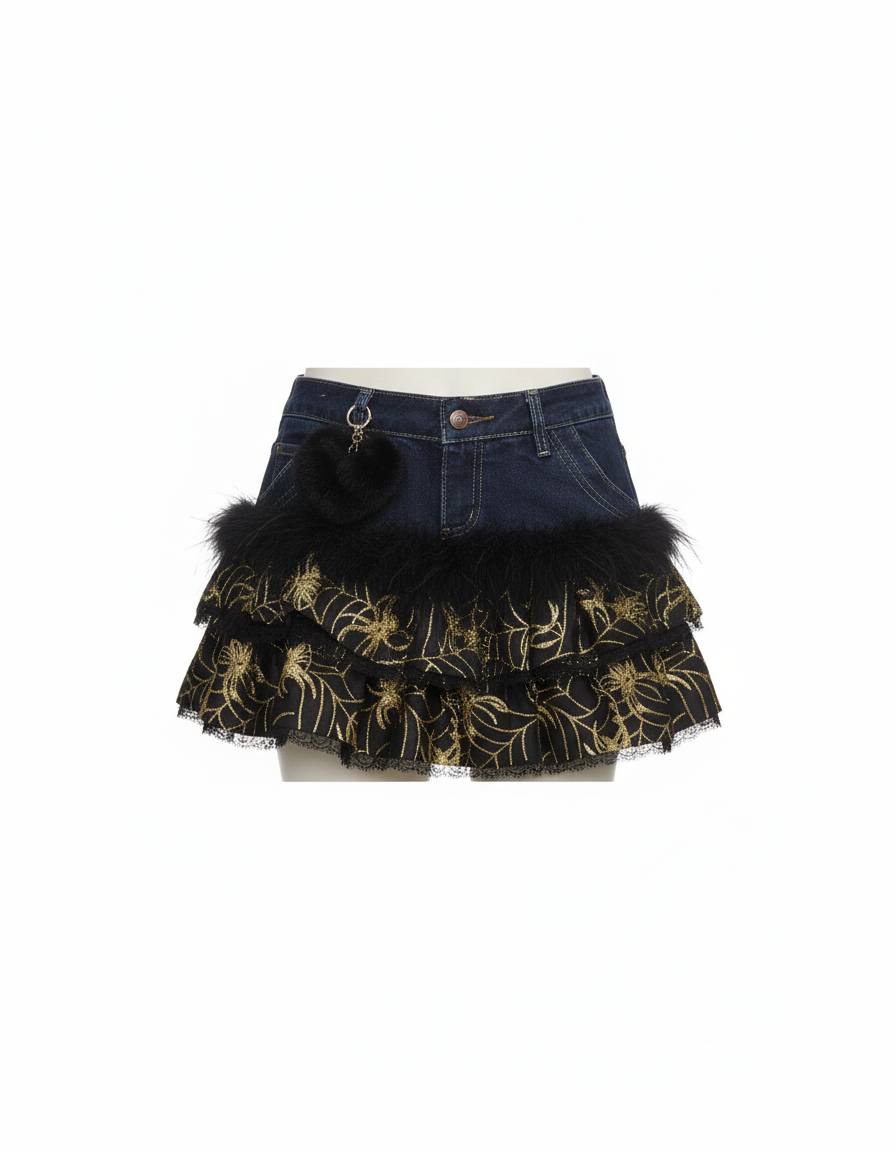 Jupe Jean Imprimée Fausse Fourrure Gothic : L'Audace Redéfinie