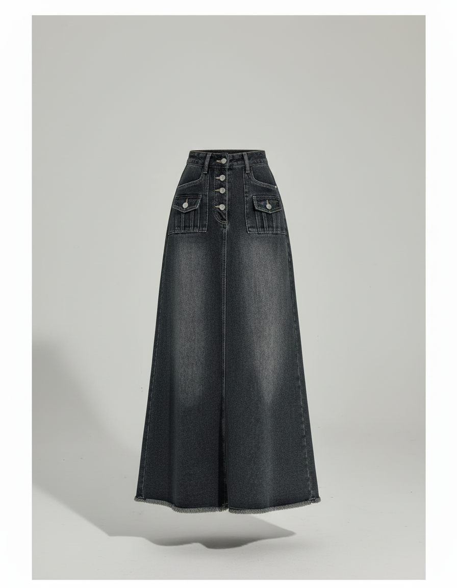 L'Élégance Décontractée Redéfinie : Votre Jupe Jean Longue Boutonnée Chic