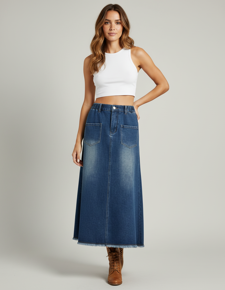 La Jupe Jean Longue Évasée : L'Élégance Décontractée Redéfinie