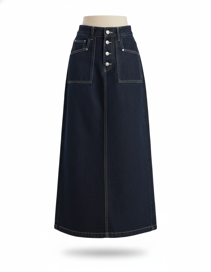 Jupe Boutonnée En JeanJupe En Jean Bleu FoncéJupe En Jean Longue