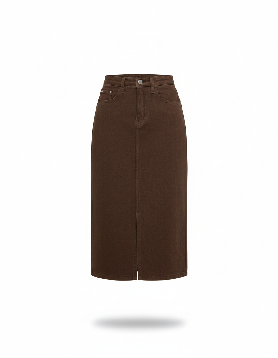 Redéfinissez Votre Élégance Quotidienne avec Notre Jupe Jean Marron Droite Fendue