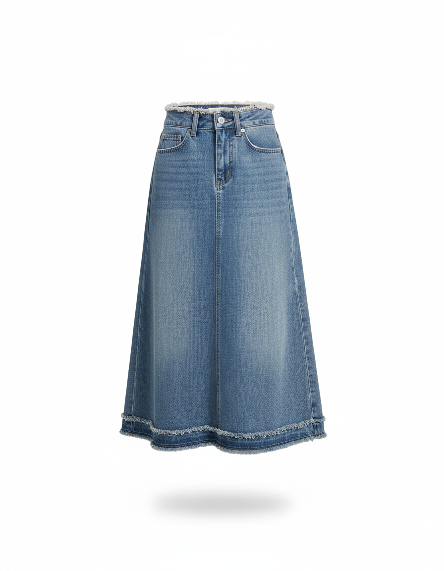 Usage de la Jupe Jean Midi Frangée Tendance