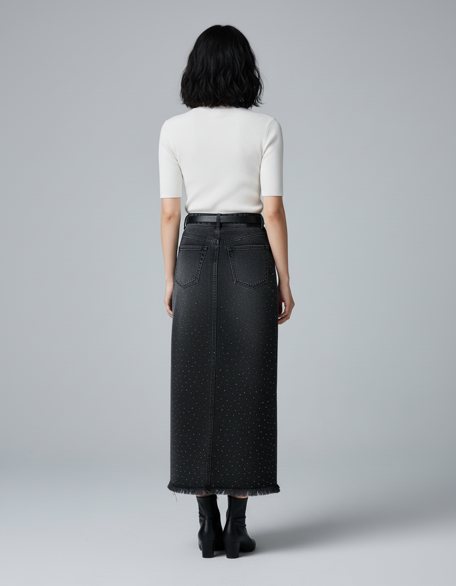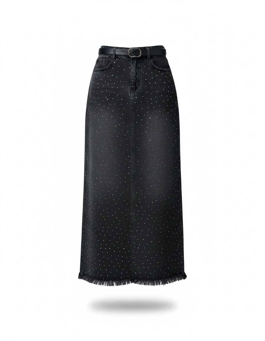 Jupe Jean Noir Délavé Strass Chic : L'Éclat Discret Redéfini