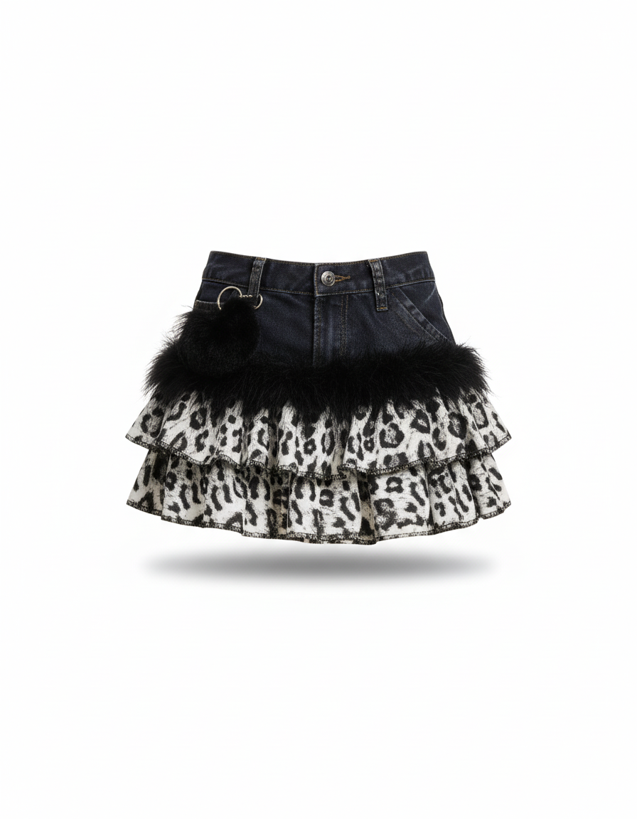 Affirmez Votre Style : La Jupe Jean Fausse Fourrure Léopard