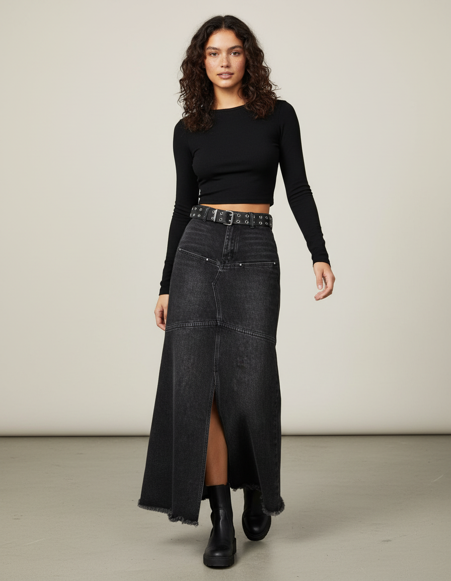 L'Élégance Décontractée Redéfinie : Votre Jupe Jean Noire Longue Chic