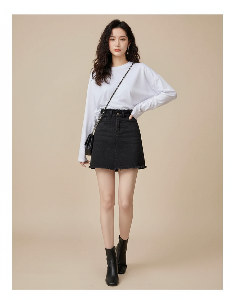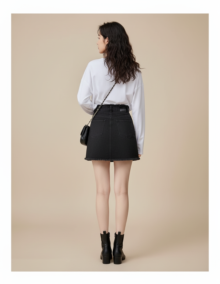 La Jupe Jean Noire Effilochée : L'Élégance Décontractée Redéfinie