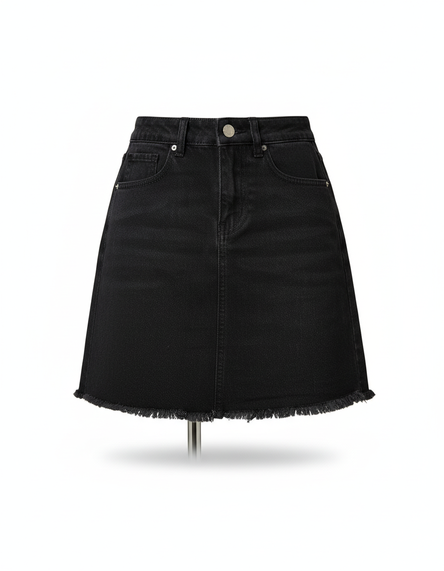 Pourquoi choisir la Jupe Jean Noire Effilochée Décontractée
