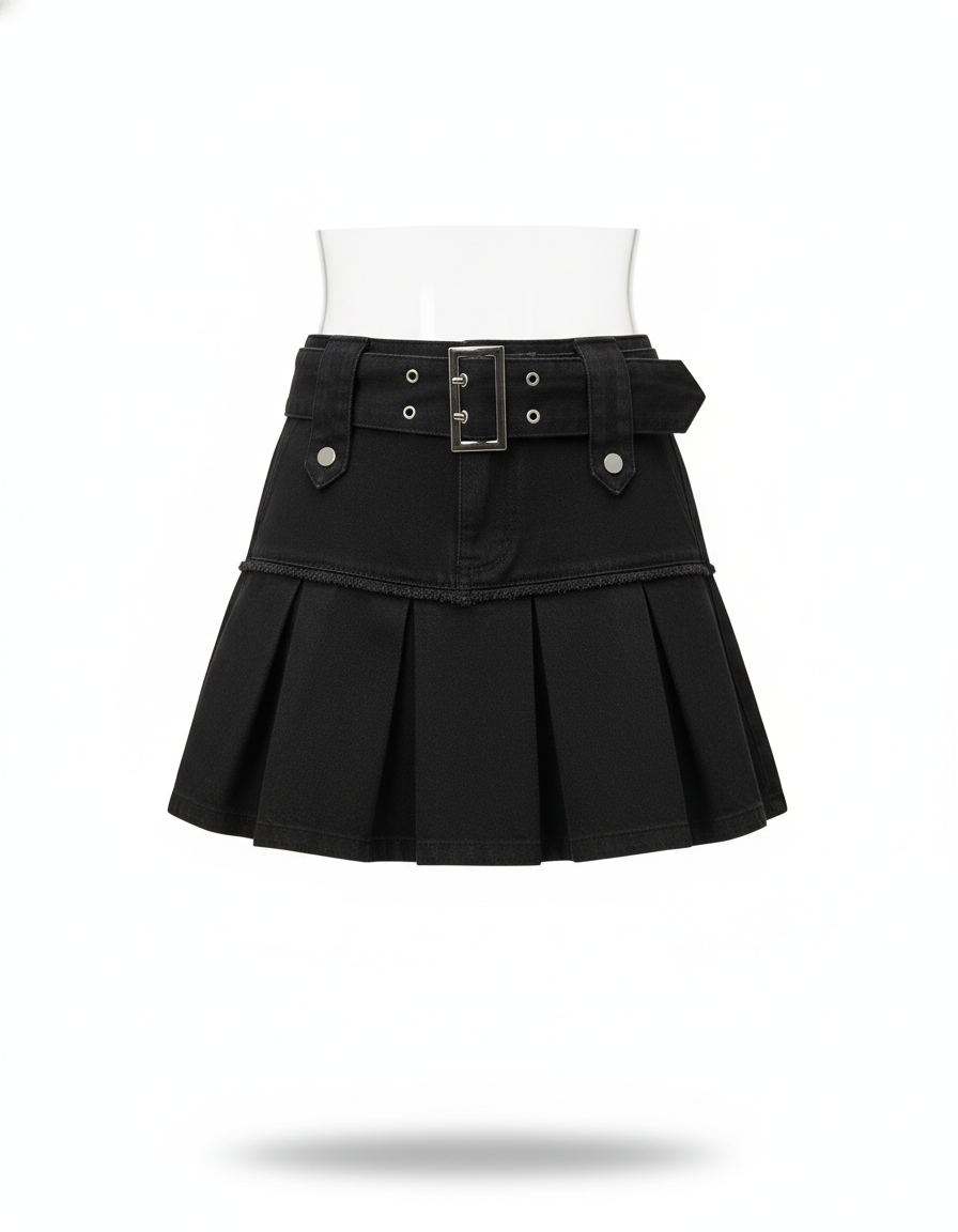 - Coupe : Mini-jupe plissée.