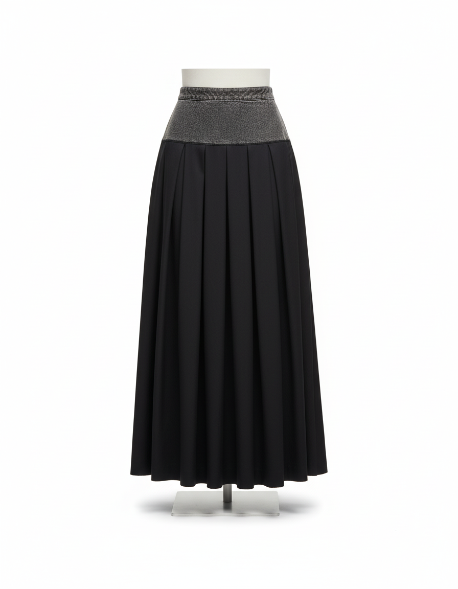 Jupe Jean Patchwork Plissée Chic : Longueur Maxi