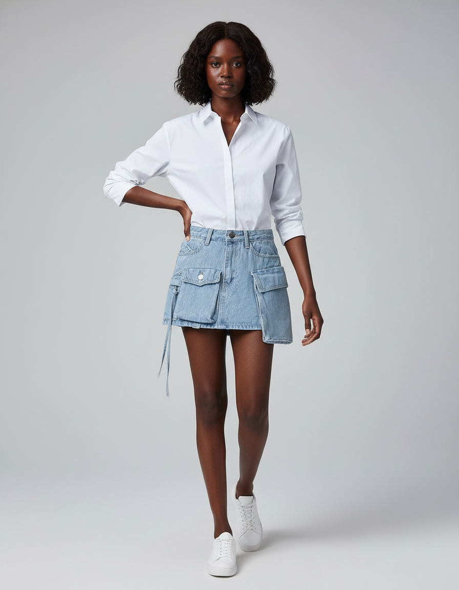 Cette jupe en jean cargo est la pièce parfaite pour un style décontracté et tendance.