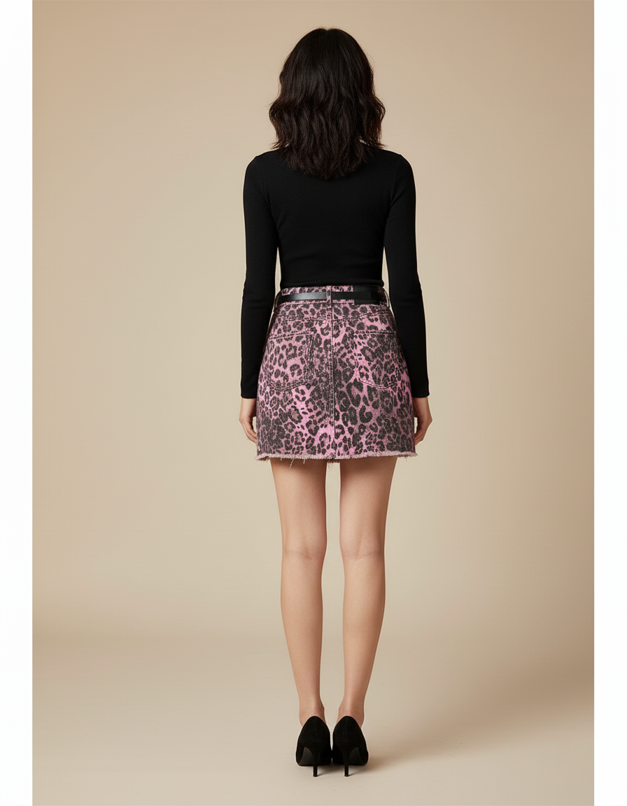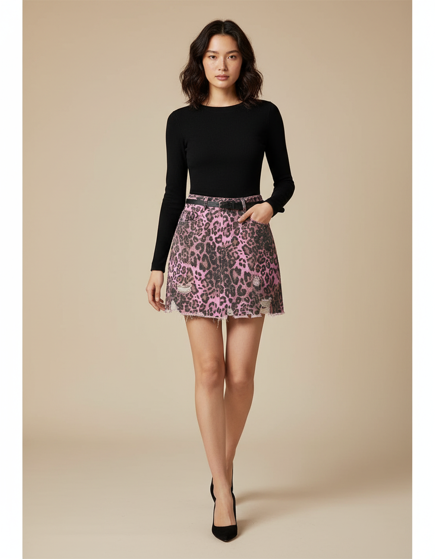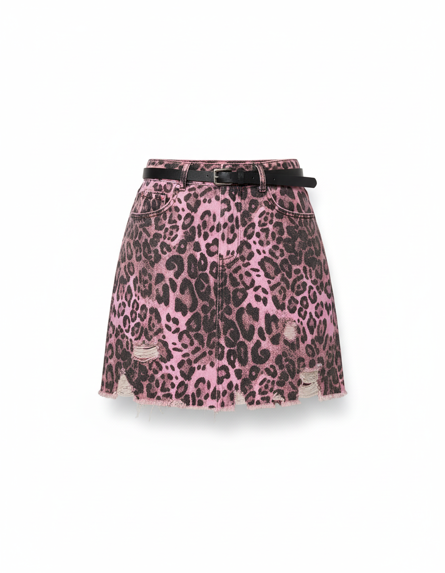 Jupe Jean Rose Léopard Déchirée : L'Éclat Audacieux du Style Urbain