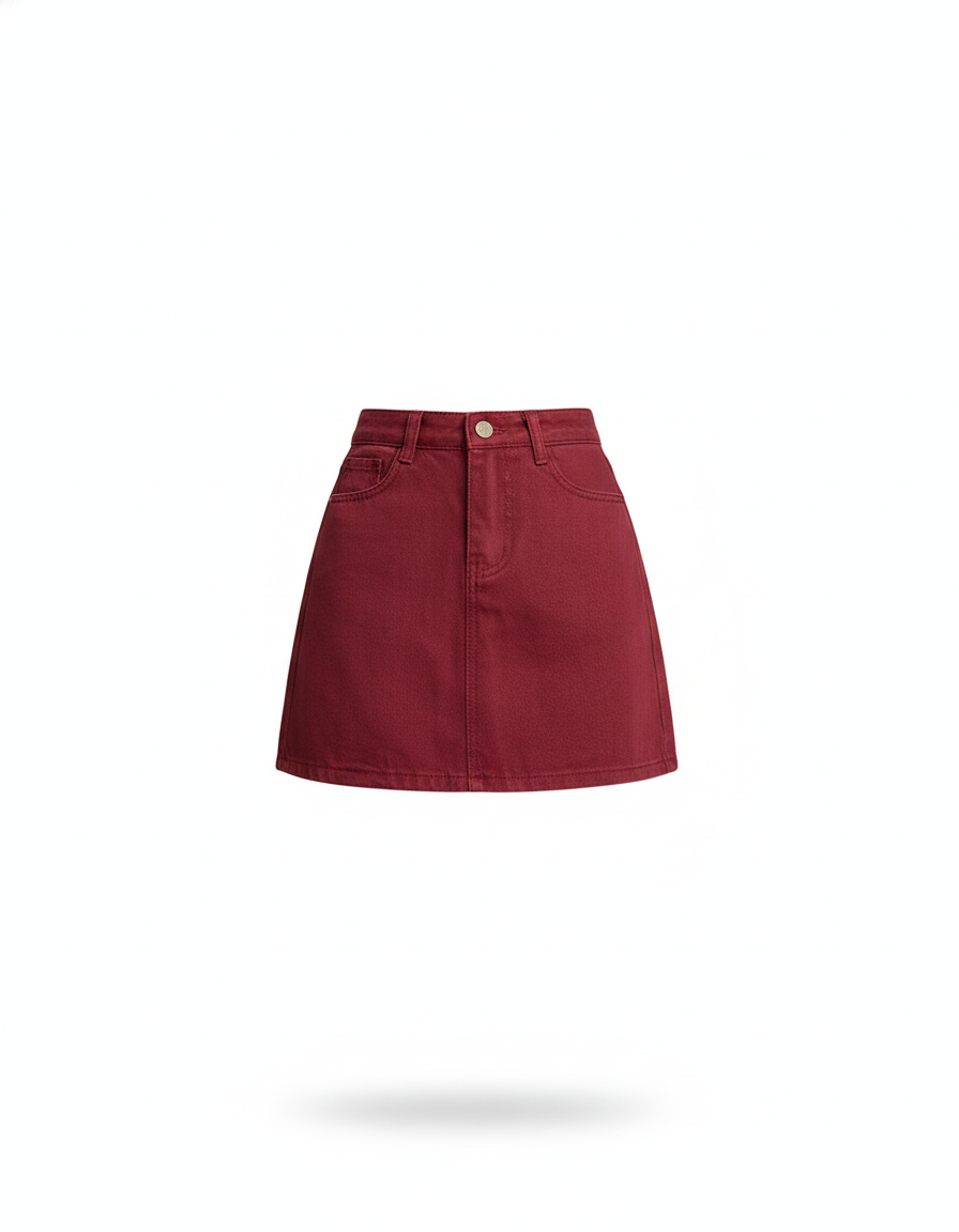 Jupe Jean Rouge Bordeaux Mini Décontractée