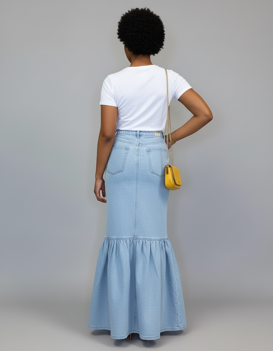 Découvrez notre jupe en jean sirène, une pièce élégante et moderne pour toutes les occasions.