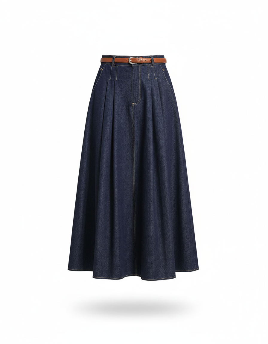 Jupe Longue En Jean Brut - Coupe Évasée Plissée